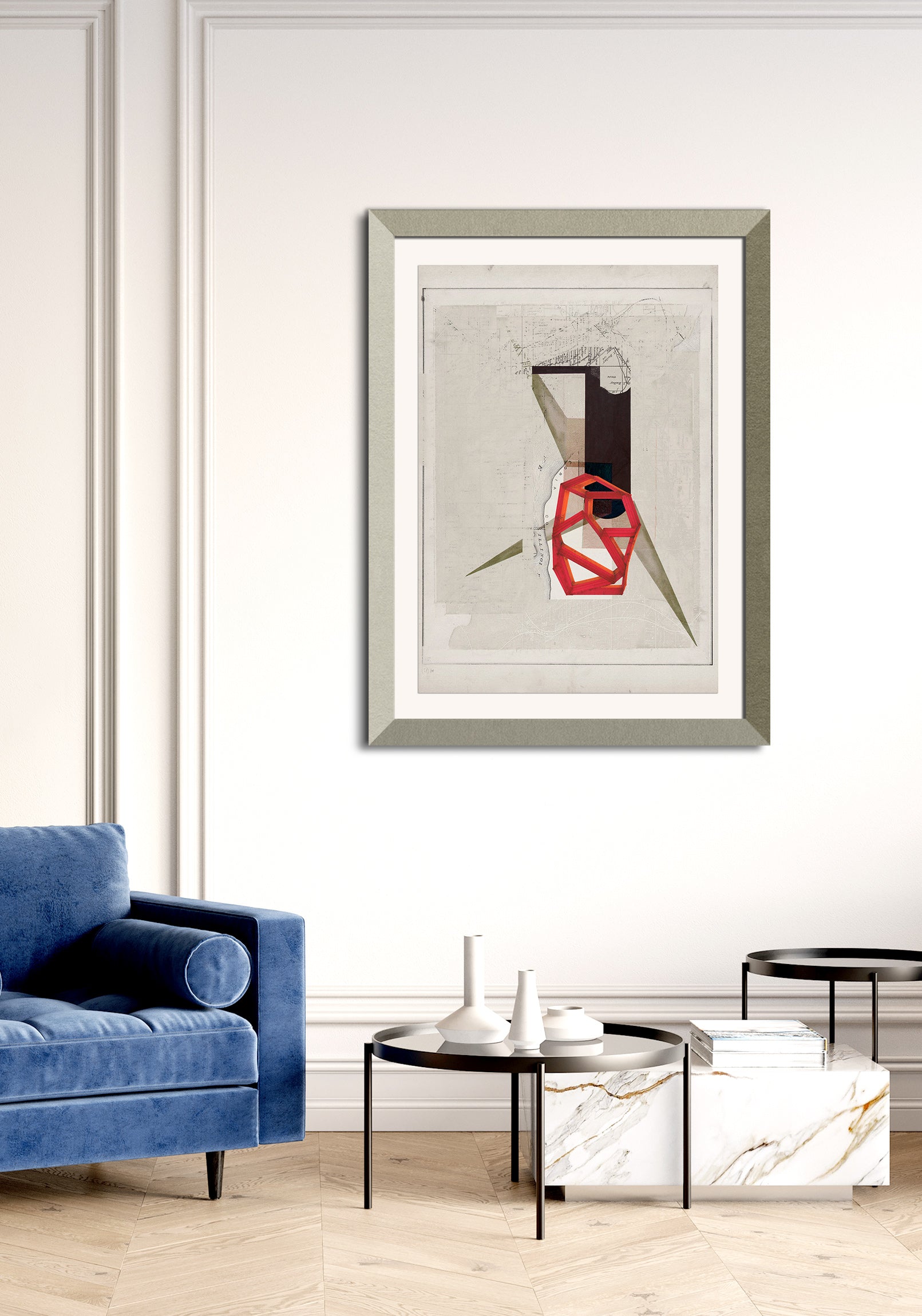 The image with the framed artwork is a simulation to provide a general sense of scale and framing options, suggesting a 10-15cm margin between the artwork and the frame, which could be achieved with a passpartout, or a foam on the background.