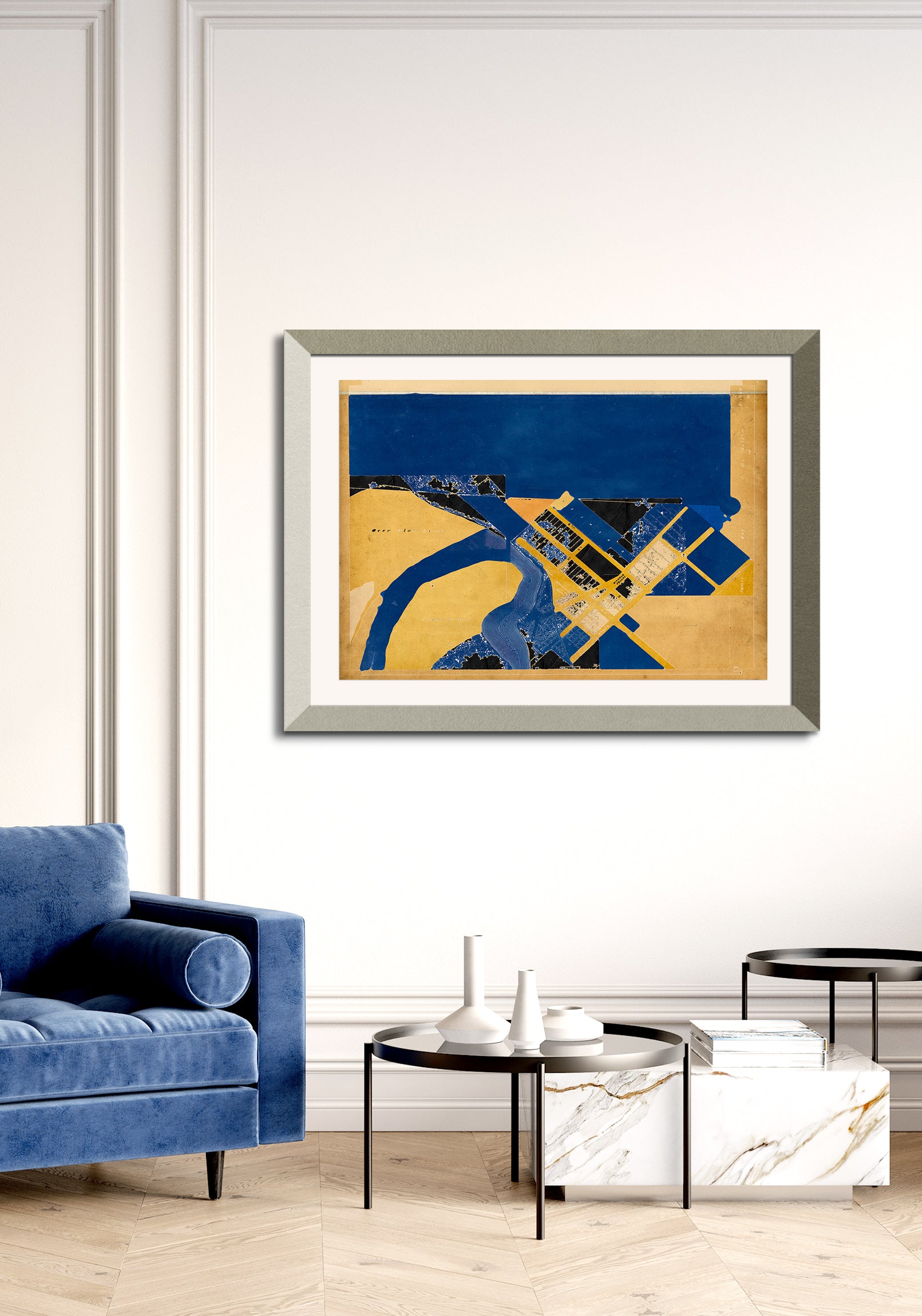 The image with the framed artwork is a simulation to provide a general sense of scale and framing options, suggesting a 10-15cm margin between the artwork and the frame, which could be achieved with a passepartout, or a foam on the background.