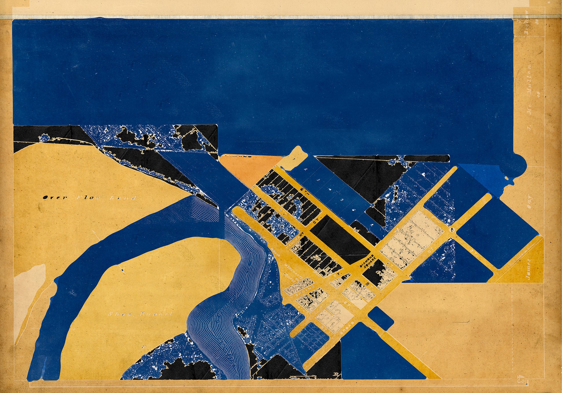 This collection comprises a series of artworks created with digital tools incorporating maps into their compositions.
