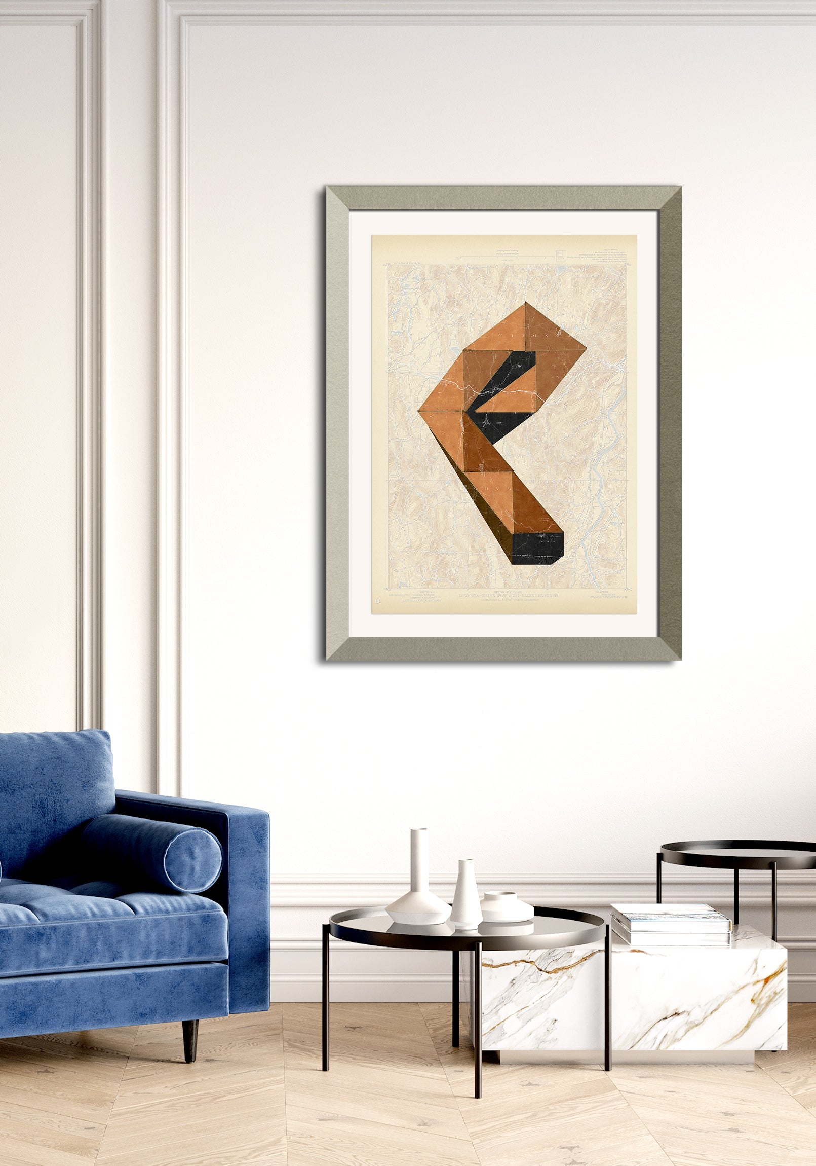 Combined with various textures and graphic elements, the maps take on different levels of prominence in each piece, ranging from subtle background elements to central compositional features.