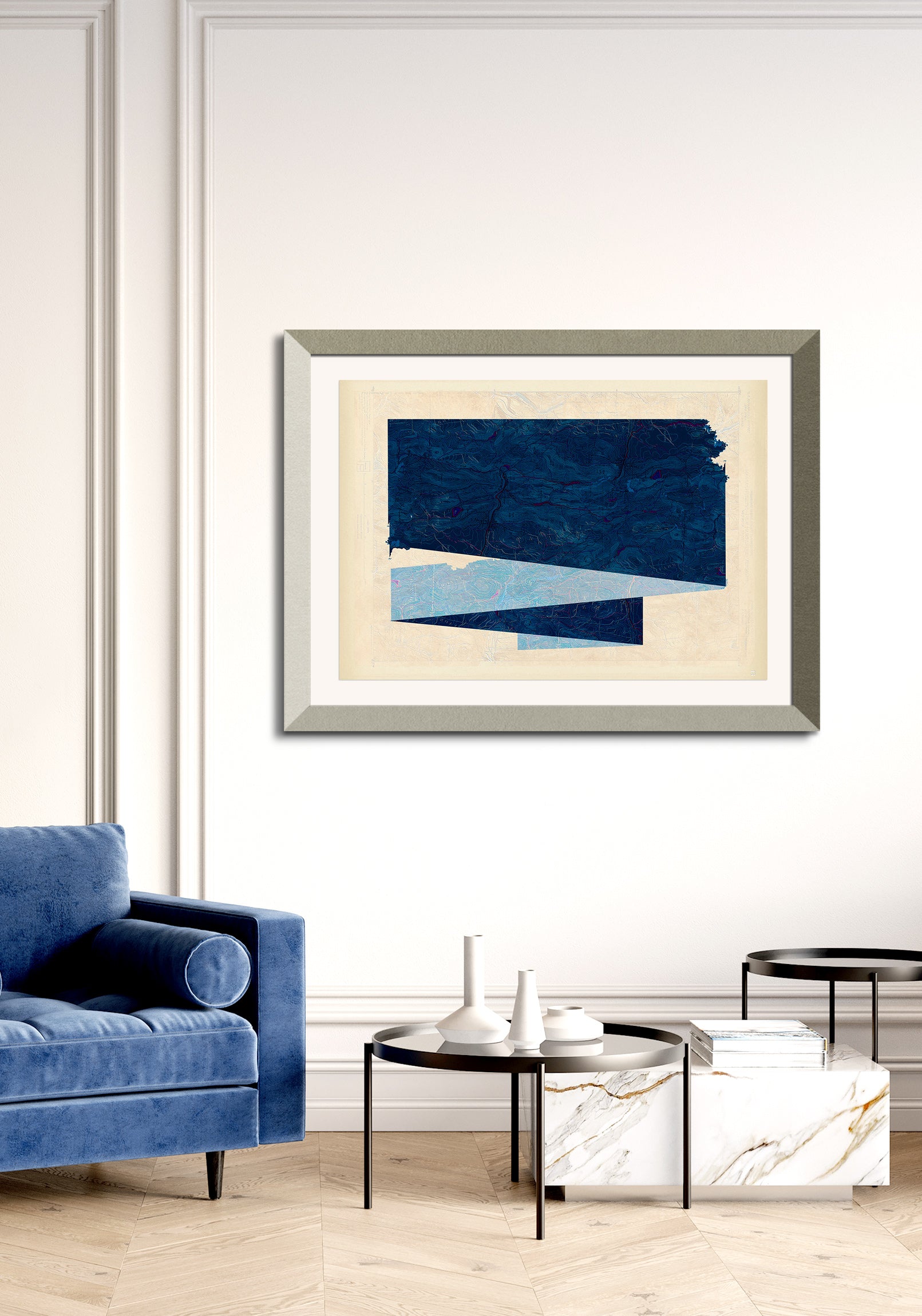 The image with the framed artwork is a simulation to provide a general sense of scale and framing options, suggesting a 10-15cm margin between the artwork and the frame, which could be achieved with a passepartout, or a foam on the background.