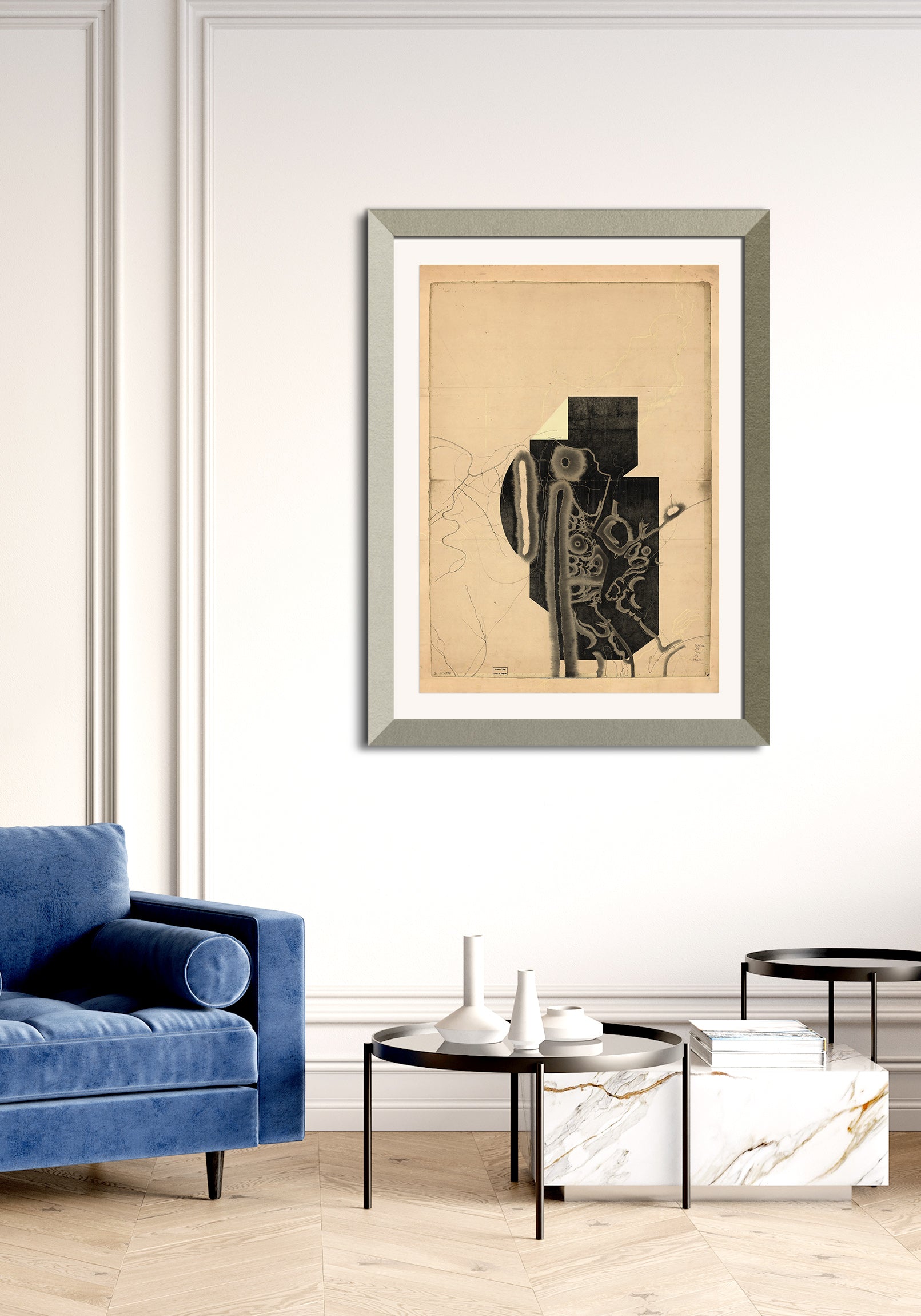 The image with the framed artwork is a simulation to provide a general sense of scale and framing options, suggesting a 10-15cm margin between the artwork and the frame, which could be achieved with a passepartout.